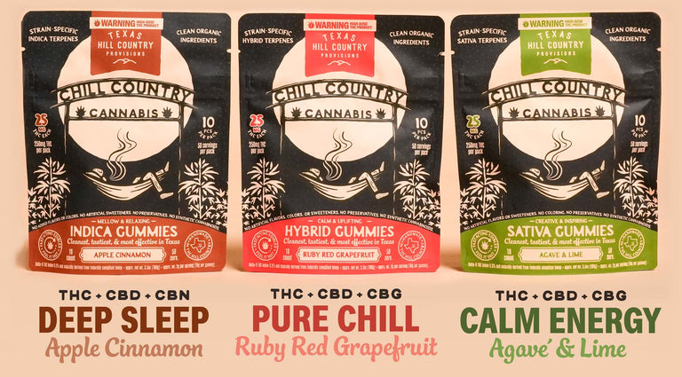 We make all of our products in-house using simple organic ingredients and clean processing. Chill Country gummies are the cleanest, tastiest, and most effective you'll find anywhere in Texas, or beyond.