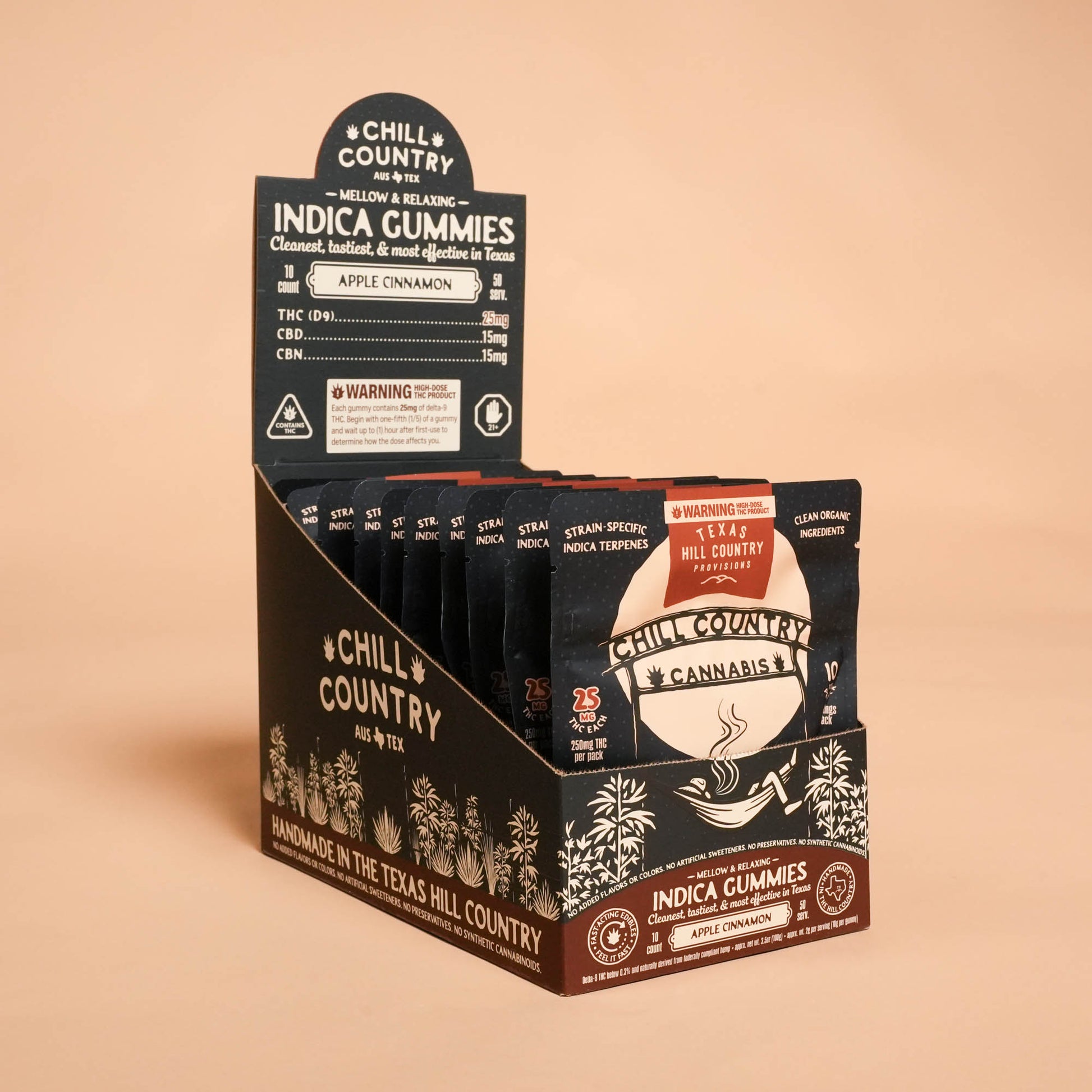 Each gummy contains 25mg of natural delta-9 THC, 15mg of CBD, and 15mg CBN + strain-specific indica terpenes.