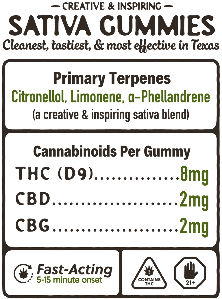 Unlike most hemp-derived edibles on the market, we only use naturally derived cannabinoids and organic ingredients. They’re the cleanest, tastiest, and most effective edibles in Texas.